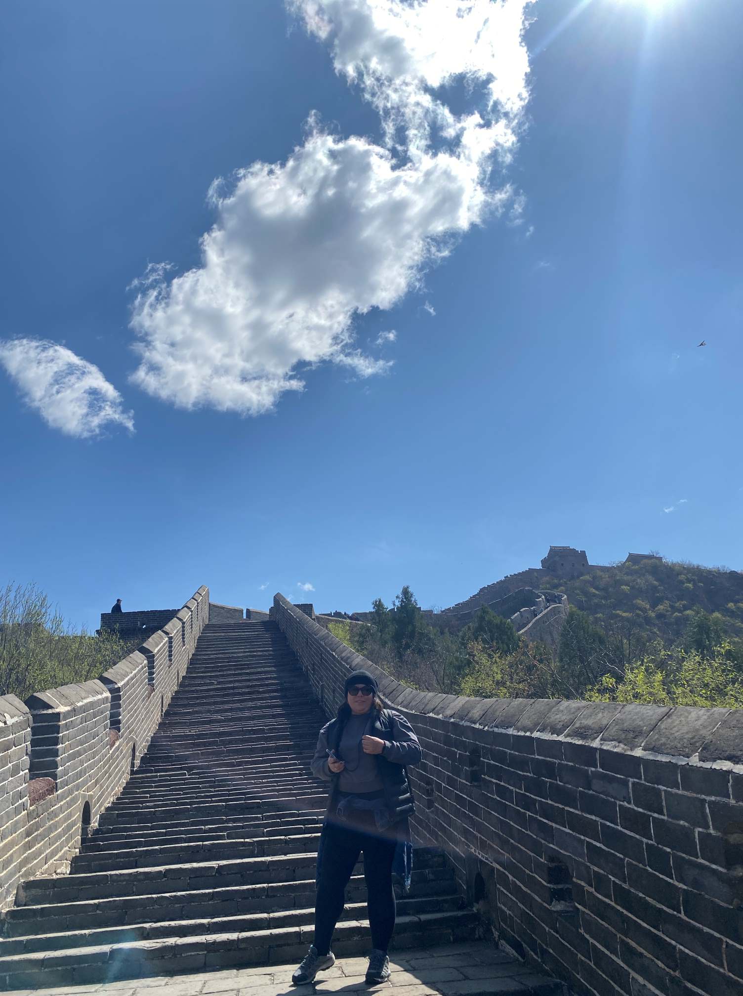 Jinshanling’de de teleferik ulaşımı varmış ama malum hava koşulları nedeniyle teleferik çalışmıyordu. Diyorum ya, kimin gözü kaldıysa gerçekten hepsini yaşadık 🧿 Bizi bugilerle (golf arabalarıyla) Zhuanduokou Geçidine kadar çıkarttılar. Buradan “East Five-window Tower”a kadar yürümemizi, sonra geri dönerek Houchuankou Geçidinden geri aşağı yürümemizi önerdiler. East Five-window Tower, duvarın doğudaki bölümünün en yüksek yeriymiş. Ben çıkmadım oraya kadar. Çıksam muhtemelen inemezdim. Hem çok dik, hem restore edilmemiş hem de yan duvarları bulunmuyordu. Flower Tower’da kaldım 😎 Zhuanduokou-Flower Tower arası 6,5km. Engebeli, bol inişli çıkışlı, hatta iniş çıkışların basamak yüksekliklerinin 50-60cm’leri bulduğu kısımlarıyla bir de tabi fotoğraf molalarıyla 2,5 saat sürdü. 2,5 saat dünyanın tepesinde yürüdüm 💙💙 Bir Nemrut’a çıktığımda hissetmiştim dünyanın tepesinde olduğumu, bir de burada hissettim. İyi ki 🙏